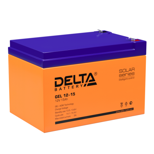 Delta GEL 12-15 - герметизированные, необслуживаемые свинцово-кислотные аккумуляторы серии GEL изготовлены по технологии AGM+GEL: combined AGM and GEL technology. Это современное технологическое решение, сочетающее в себе специализированные AGM сепараторы, с частичным сгущением электролита, для получения двойного преимущества: высоких разрядных характеристик, присущих AGM технологии, и высокой эксплуатационной устойчивости, которая характерна для аккумуляторов, изготовленных по технологии AGM+GEL. Аккумуляторы предназначены для работы как в буферном, так и в циклическом режимах. Рекомендуются для применения в автономных энергосистемах, а также совместно с системами на базе альтернативных источников энергии.