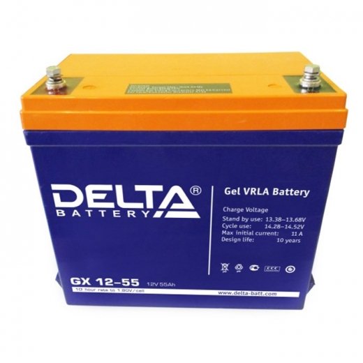 Delta GX 12-55 - герметизированные, необслуживаемые свинцово-кислотные аккумуляторы, изготовлены по технологии GEL. В качестве электролита используется композитный гель - загущенный раствор серной кислоты, что обеспечивает устойчивость аккумуляторов Delta GX к глубоким разрядам и высокую температурную стабильность, а также увеличивает число циклов заряда/разряда, и продолжительность работы в тяжелых режимах систем на базе возобновляемых источников энергии. Аккумуляторы предназначены для работы как в буферном, так и в циклическом режимах. Рекомендуются для применения в автономных энергосистемах, а также совместно с системами на базе альтернативных источников энергии.