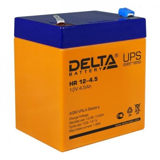 Delta HR 12-4.5 - являются свинцово-кислотными, герметизированными, необслуживаемыми аккумуляторами с системой рекомбинации газов (VRLA). Произведены по технологии AGM (электролит, абсорбированный в стекловолоконном сепараторе). Благодаря данной технологии аккумуляторы не требуют долива дистиллята на протяжении всего срока службы. Серия HR относится к линейке DELTA UPS series, разработанной специально для использования в источниках бесперебойного питания, в т.ч. ЦОД, систем связи и другого оборудования.