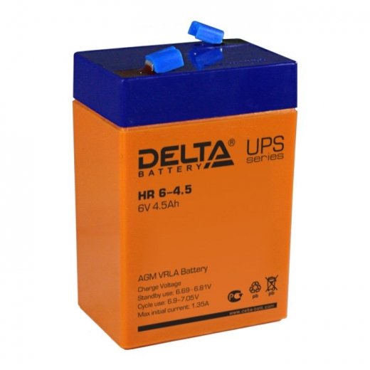 Delta HR 6-4.5 - являются свинцово-кислотными, герметизированными, необслуживаемыми аккумуляторами с системой рекомбинации газов (VRLA). Произведены по технологии AGM (электролит, абсорбированный в стекловолоконном сепараторе). Благодаря данной технологии аккумуляторы не требуют долива дистиллята на протяжении всего срока службы. Серия HR относится к линейке DELTA UPS series, разработанной специально для использования в источниках бесперебойного питания, в т.ч. ЦОД, систем связи и другого оборудования.