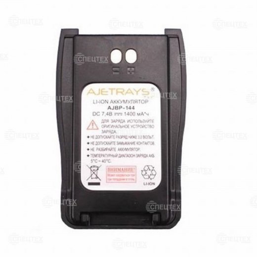 AJBP-144L – литий –ионный аккумулятор, созданный для портативных радиостанций Ajetrays (моделей AJ-144 и AJ-150). Аккумулятор данного типа предназначен для постоянного активного использования и не подлежит хранению в течение длительного срока. Независимо от интенсивности применения, срок службы аккумулятора  - 2 – 3 года с момента его изготовления. В настоящее время аккумуляторы Li-ion типа широко используются в электронной технике и электроприборах в силу ряда преимуществ по сравнению с Ni-MH или Ni-Cd аккумуляторами.