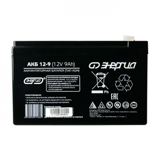 АКБ 12-9 - аккумуляторная батарея емкостью 9 Ач.