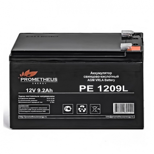 Свинцово-кислотные аккумуляторы Prometheus Energy PE1209L являются ярким примером герметизированных, необслуживаемых батарей с системой рекомбинации газов (VRLA), произведенных по AGM технологии (электролит, абсорбированный в стекловолоконном сепараторе). Аккумулятор имеет емкость 9Ah.