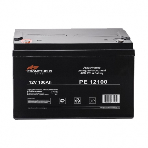 Свинцово-кислотные аккумуляторы Prometheus Energy PE12100 являются ярким примером герметизированных, необслуживаемых батарей с системой рекомбинации газов (VRLA), произведенных по AGM технологии (электролит, абсорбированный в стекловолоконном сепараторе). Аккумулятор имеет емкость 100Ah.