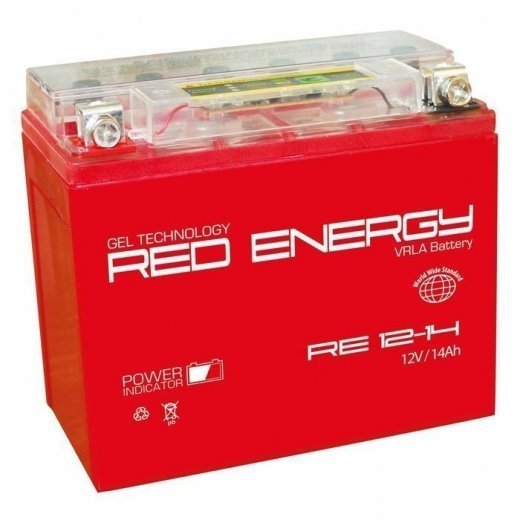 Red Energy RE 1214 - аккумуляторная батарея, изготовлена по технологии GEL в специальном ударопрочном корпусе, и является одним из самых надежных АКБ для любых видов техники (мотоциклов, скутеров, гидроциклов, квадроциклов и т.д.). Аккумулятор обладает встроенным индикатором состояния батареи. В корпус устройства вмонтирован индикатор, который мгновенно измеряет заряд батареи путем нажатия кнопки "TEST". Полученное значение заряда выводится на экран. Такое простое в эксплуатации устройство позволяет проверить заряд аккумуляторной батареи в любых условиях без дополнительного оборудования для замера, а также дает возможность регулярно следить за состоянием АКБ.