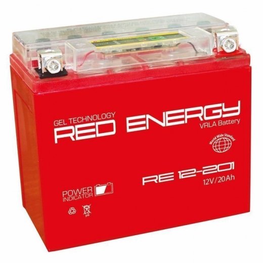 Red Energy RE 12201 - аккумуляторная батарея, изготовлена по технологии GEL в специальном ударопрочном корпусе, и является одним из самых надежных АКБ для любых видов техники (мотоциклов, скутеров, гидроциклов, квадроциклов и т.д.). Аккумулятор обладает встроенным индикатором состояния батареи. В корпус устройства вмонтирован индикатор, который мгновенно измеряет заряд батареи путем нажатия кнопки "TEST". Полученное значение заряда выводится на экран. Такое простое в эксплуатации устройство позволяет проверить заряд аккумуляторной батареи в любых условиях без дополнительного оборудования для замера, а также дает возможность регулярно следить за состоянием АКБ.