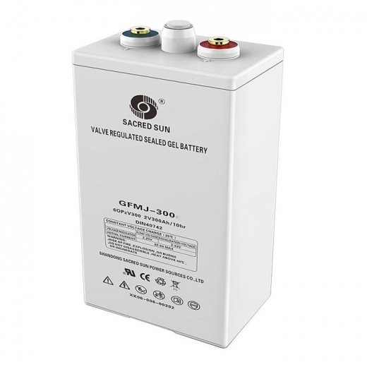 Sacred Sun GFMJ-300 - аккумулятор емкостью 300 Ач и напряжением 2 В. Аккумуляторы серии GFMG используют новейшие технологии регулирования AGM клапана. Выполнены из лучших материалов и используют несколько запатентованных технологий. Аккумуляторы могут быть широко использованы в UPS/EPS, телекоммуникации, на полях электроэнергии и т.д. Все блоки GFMG серии имеют номинальную расчетный срок службы более 12 лет.