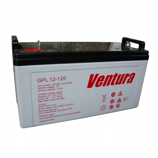 Ventura GPL 12-120 - универсальная батарея с увеличенным сроком службы до 12 лет. Это достигается не только применением толстых намазных пластин, но и использованием специальных легирующих добавок, повышающих коррозионную стойкость пластин и исключающих их деформирование. Кроме того, стекловолоконный сепаратор АКБ изготовлен из боросиликатного стекла, что обеспечивает повышенную пористость сепаратора, а также его высокую устойчивость к воздействию высоких температур и серной кислоты. Аккумулятор предназначен для эксплуатации как в режиме постоянного подзаряда, так и в циклическом режиме.