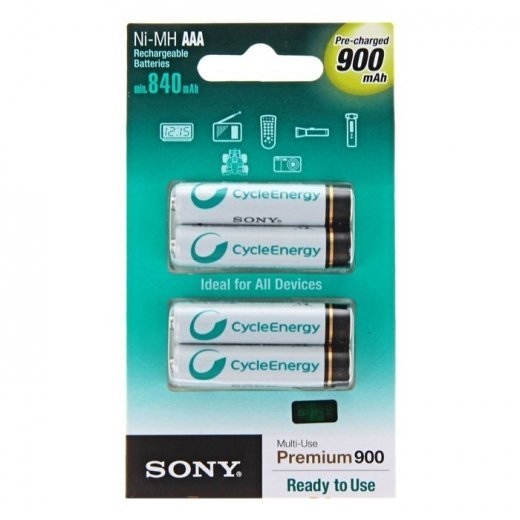 Sony HR03-4BL 900 mAh cycle energy BLUE [NHAAAB4G] (40/240) - аккумуляторная предзаряженная никель-металл-гидридная батарея размера AAА (900 мАч). Всегда готов к использованию сразу же после покупки (как щелочные батареи). Сохраняет до 70% первоначального заряда в течение года.