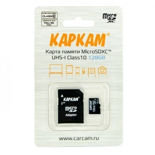 Каркам 128GB microSDHC 10Class UHS-I - карта памяти на 128 Гб, созданная для бесперебойной работы в видеорегистраторах Каркам. Данные карты памяти идеально подходят для записи FULL HD видео и больших массивов данных, т.к. обладают классом записи 10, что позволяет минимизировать задержки в работе видеорегистратора, избежать зависаний и потери данных.