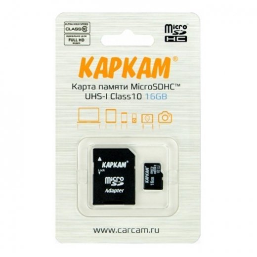 Каркам 16GB microSDHC 10Class UHS-I - карта памяти на 16 Гб, созданная для бесперебойной работы в видеорегистраторах Каркам. Данные карты памяти идеально подходят для записи FULL HD видео и больших массивов данных, т.к. обладают классом записи 10, что позволяет минимизировать задержки в работе видеорегистратора, избежать зависаний и потери данных.