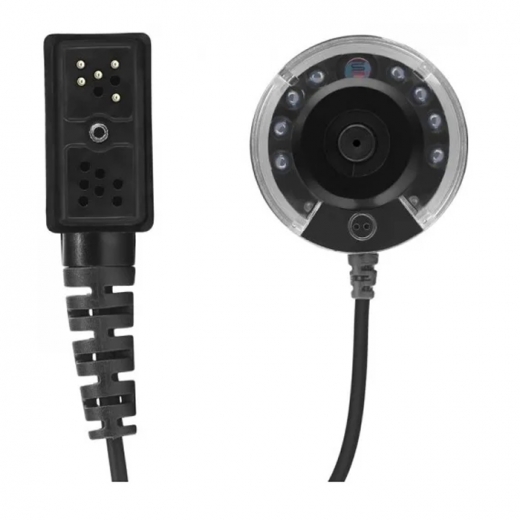 Размер камеры совсем миниатюрный (38х22.5 миллиметра), а весит она всего 38 грамм - ее удобно использовать в работе. Длина провода составляет 90 сантиметров, что удобно для крепления к переносному видеорегистратору. Сам разъем крепления на регистраторе находится сбоку, поэтому крепление не будет доставлять неудобств работникам. Используется встроенный высокочувствительный микрофон, способный отчетливо улавливать звуки на расстоянии до 10 метров.