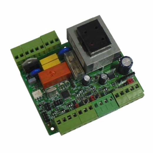 Плата управления для автоматических шлагбаумов производства Фантом дает возможность подключать дополнительные модули оборудования: фотоэлементы, радиоуправление, сигнальные лампы и пр. На плате имеется индикация всех входящих управляющих сигналов.