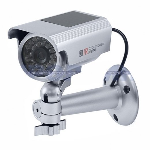 Proline PR-122S представляет собой муляж реальной уличной камеры видеонаблюдения со встроенной солнечной батареей. В муляж встроен мигающий красный светодиод, тем самым муляж Proline PR-122S неотличим от настоящей видекамеры.