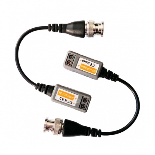 Комплект пассивных приёмо-передатчиков видеосигнала по витой паре с разъёмами BNC на кабеле. Видеовход/выход - BNC/Под зажим витой пары, максим.расстояние передачи - 330 м