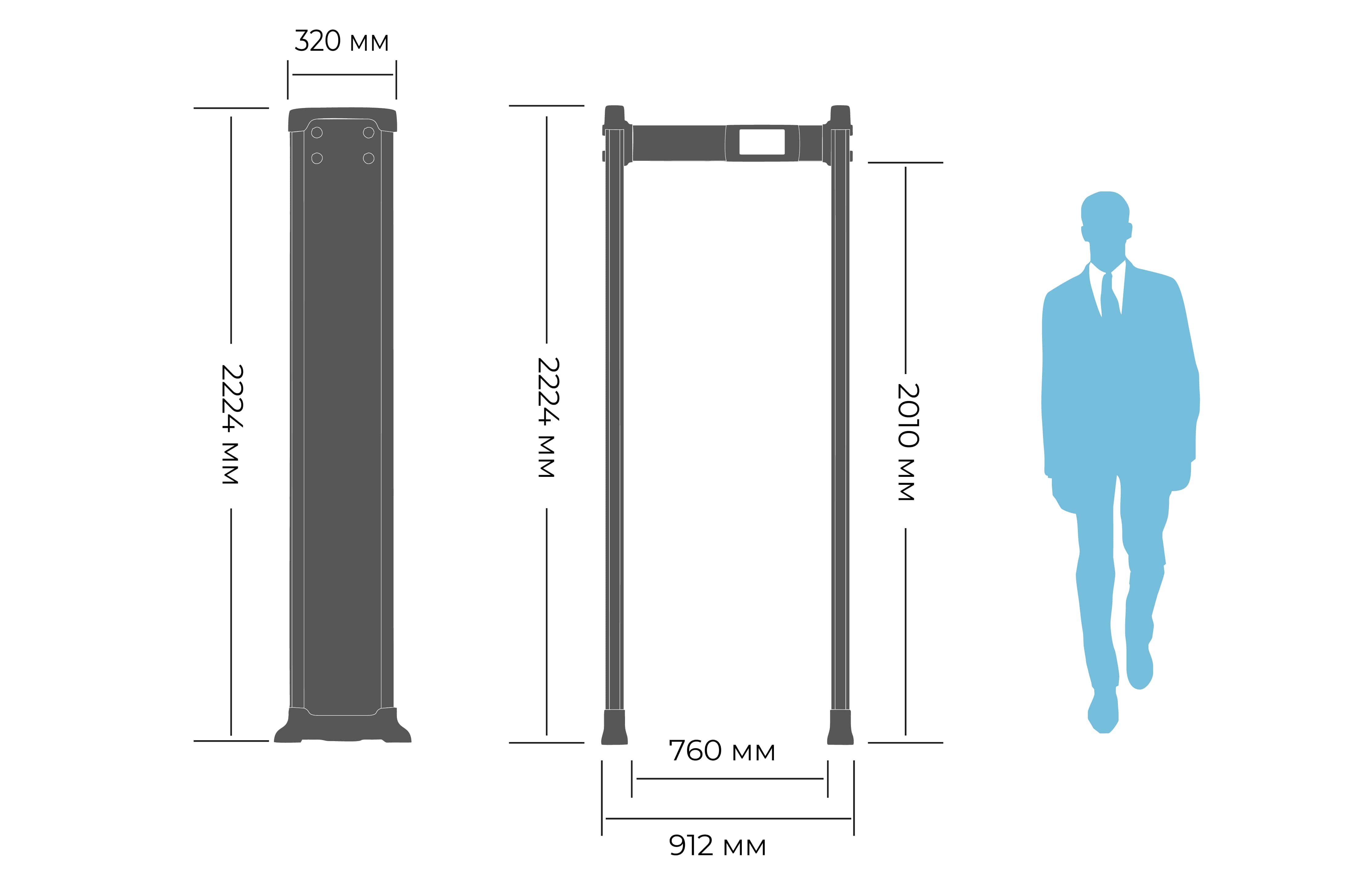 При обнаружении металлического предмета система оповещает оператора звуковым и световым сигналом, а также индикацией зоны, в которой был найден объект. Настройки чувствительности позволяют адаптировать металлодетектор к условиям эксплуатации, обеспечивая эффективную работу как в местах с высокой проходимостью, так и на объектах с повышенными требованиями безопасности.ГАБАРИТЫ МЕТАЛЛОДЕТЕКТОРА: