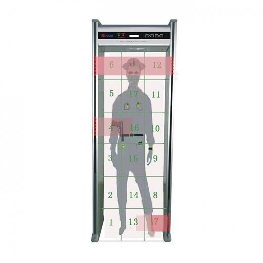 Модель «РОССИ 18» – является восемнадцатизонной и имеет возможность детектирования как черных, так и цветных металлов. Ее можно настроить на обнаружение металла массой от 5 граммов! Наличие светодиодных индикаторов, располагающихся по боковым антенным панелям, позволяет очень быстро оценить местоположение запрещенных металлических предметов на теле человека. Модель обладает очень высокой помехоустойчивостью к внешним устройствам, обладающим сильными электромагнитными полями. Настройка и управление металлодетектором осуществляется с помощью пульта дистанционного управления, что позволяет использовать «РОССИ 18» непрерывно, не мешая процессу контроля потока людей.