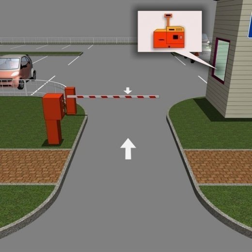водитель подъезжает к въездной стойке, нажимает соответствующую кнопку, берет билет со штрих-кодом, после чего шлагбаум открывается, и водитель заезжает на территорию парковки .