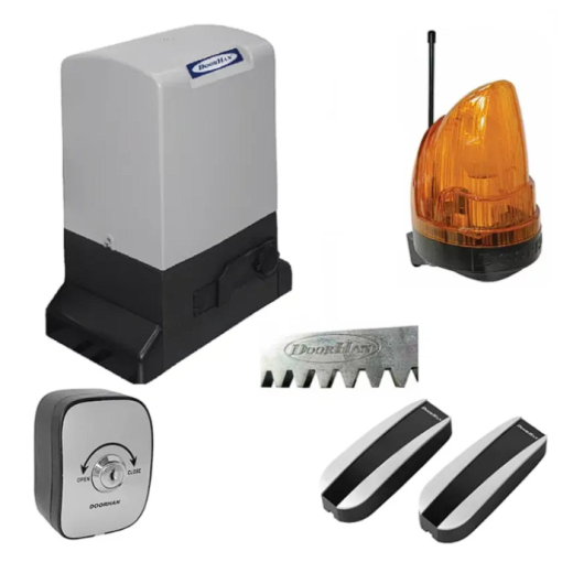 Комплект привода SL-500KIT для ворот до 500 кг в составе: привод SLIDING-500, со встроенным приемником, рейка DHRACK 4 шт,ключ-кнопка KEYSWITCH-N, фотоэлементы PHOTOCELL-N, сигнальная лампа LAMP