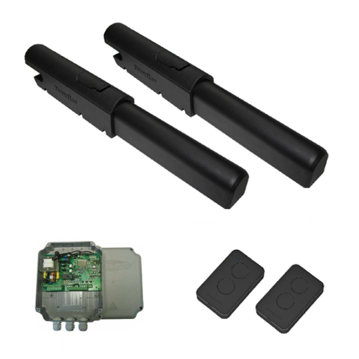 Комплект линейного привода для распашных ворот с шириной створки до 5 м весом до 500 кг, 220…240 В, 150 Вт, 1,5 см/с, интенсивность использования 50 %, IP54, -40…+55 °C. В комплекте: привод SWING-5000PRO - 2 шт, блок управления SW-MINI-1шт., DoorHan Transmitter 2-PRO-Black-2шт.