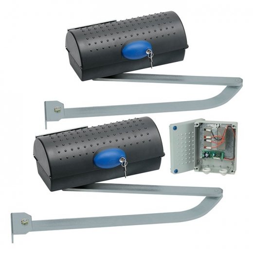 Автоматика для ворот распашного типа максимальной массой створки ворот до 800кг и шириной створки до 3,0м. Автоматика способна работать в интенсивном режиме. Напряжение питания двигателя 24В.