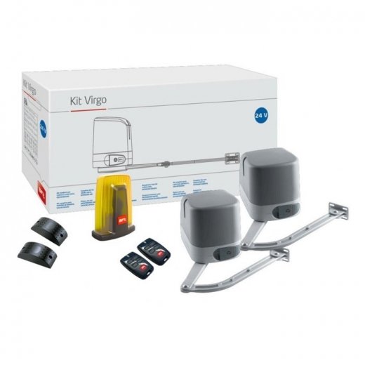 - Модель BFT Virgo Kit предназначена для установки на легкие ворота, масса створок которых не превышает 200 кг при ширине проема 2,5 м. Оборудование отличается стабильной работой и подойдет для домовладений с насыщенным трафиком автотранспорта.