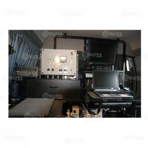 Оборудование автоматизированных рабочих мест оператора осуществляется в соответствии с требованьями Заказчика как на основе переносного, так и стационарного комплексов радиоконтроля и пеленгования. Управление комплексом может осуществляться непосредственно оператором с локального автоматизированного рабочего места, так и удаленно со стационарного поста радиоконтроля посредством каналов связи.Электропитание АРМ и радиоприемной аппаратуры может осуществляется от бортовой сети 12В и электробензоагрегата (внешней сети) 220В 500 Гц, что позволяет выполнять задачи радиоконтроля как в местах стоянок, так на маршрутах следования.Перегородки между отсеками выполняются из светонепроницаемых штор или из жесткого вибро- и звукопоглощающего материала.В качестве дополнительного оборудования и систем жизнеобеспечения подвижной станции могут входить:- автомобильная сигнализация с функцией центрального замка;