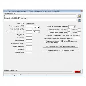 Программное обеспечение DBConverterCSV предназначено для преобразования таблиц частот из текстовых файлов формата CSV в базу данных частотных назначений специального программного обеспечения РадиоИнспектор.