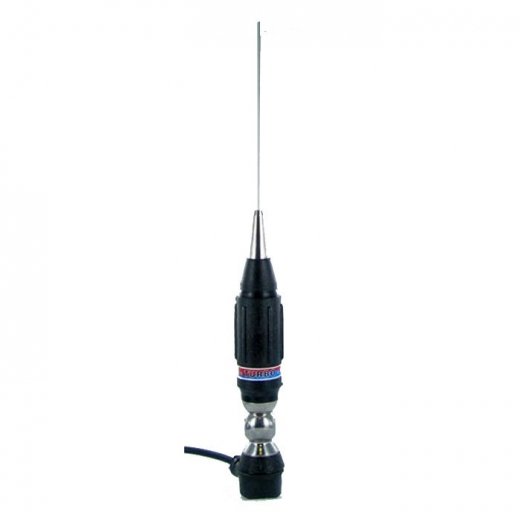 Homo РС-TURBO 28РТ врезная - автомобильная антенна работает в диапазоне 26-28 МГц и выполнена из высококачественных материалов, что дает высокую прочность и улучшает электрические характеристики. Для улучшения электрических характеристик и защиты от воздействия атмосферы часть деталей покрыты никелем. Гибкий конический штырь из высоколегированной стали амортизирует удары о ветви деревьев. Антенна имеет уникальную систему наклона, разработанную итальянской компанией "SIRIO Antenne S.r.l." и применяемую в серии антенн "TURBO" и "SILVER POWER".
