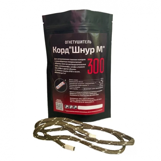 Корд «Шнур М» 300 работает как интеллектуальная система пожаротушения. Воздействие температуры на его активные компоненты вызывает выделение огнетушащего компонента, вплоть до полного подавления очага пожара.