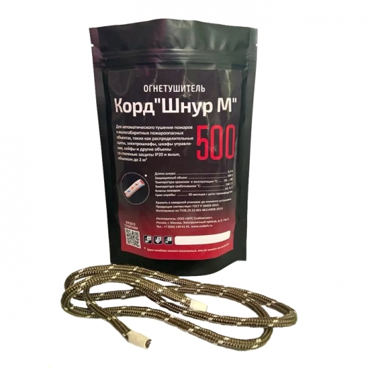 Корд «Шнур М» 500 работает как интеллектуальная система пожаротушения. Воздействие температуры на его активные компоненты вызывает выделение огнетушащего компонента, вплоть до полного подавления очага пожара.