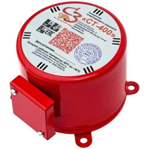 ГОА СТ-400 представляют собой цилиндр высотой 110 мм и диаметром 125 мм, в котором размещен заряд АОС массой 0,4 кг и блок охлаждения аэрозоля. По цилиндрической поверхности равномерно расположены отверстия для выхода аэрозоля в защищаемый объем. На корпусе расположена клеммная колодка для подключения электрических проводов системы модуля «Соболь».