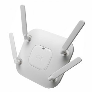 Cisco air-sap2602e (air-sap2602e-r-k9) - WiFi точка доступа компании Cisco. Точка доступа входит в серию новых высокоскоростных точек доступа Cisco 2600. Характерными особенностями точки доступа Cisco AIR-CAP2602E-r-K9 являются: отсутствие автономного управления и возможность подключения до 4 внешних съемных антенн.