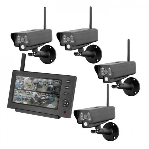 Система видеонаблюдения состоит из 4-х цветных уличных беспроводных камер с ИК-подсветкой до 5 м и распознованием движения до 10 м (по PIR датчику), устройство записи с приемником и монитором в одном корпусе, комплектом антенн и блоков питания, дает возможность построить систему наблюдения с достаточным количеством видеокамер и является полностью готовой к использованию системой. Просмотр видео можно осуществлять дистанционно на устройствах под управлением Android и iOS, для этого необходимо подключить монитор-регистратор к специальной панели с разъемом под сетевой кабель RJ-45. Для удобства также имеется возможность подключения 7" монитора с функцией записи видео, к внешнему монитору через AV кабель. Все видеоматериалы сохраняются на SD карту объемом до 32 Гб (в комплект не входит), либо на HDD диск подключаемый через USB 2.0.Особенности: