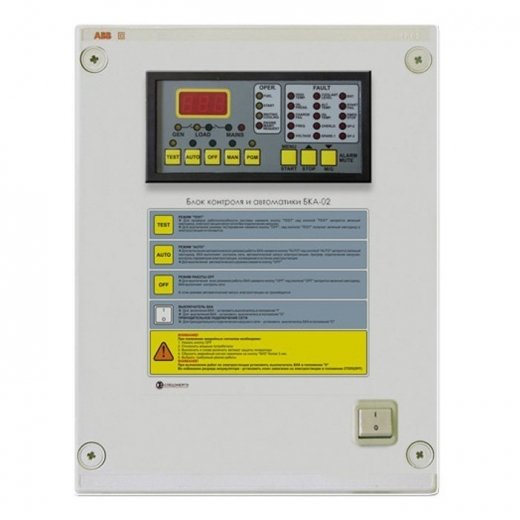 Блок контроля и автоматики (БКА) предназначен для контроля состояния питающей сети, защиты потребителей электроэнергии от повышенного (пониженного) напряжения, а также для автоматического запуска электростанции если напряжение, питающей сети находится за допустимыми пределами. Максимальное расстояние между электростанцией и БКА до 50 м.