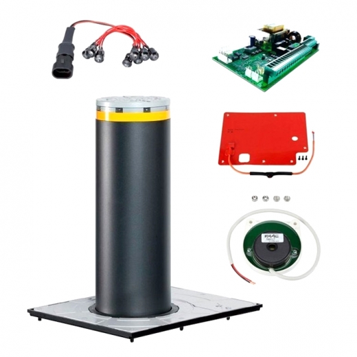 Комплект автоматического дорожного блокиратора высотой 600 мм, окрашенная сталь, диаметр столба 200мм, чувствительность к препятствиям (опция), экстренное опускание при отсутствии электропитания (опция), подъем/опуск - 5/7 сек, 230 Ватт, -40…+55 град., IP67, гидравлический привод, напряжение питания привода 230В