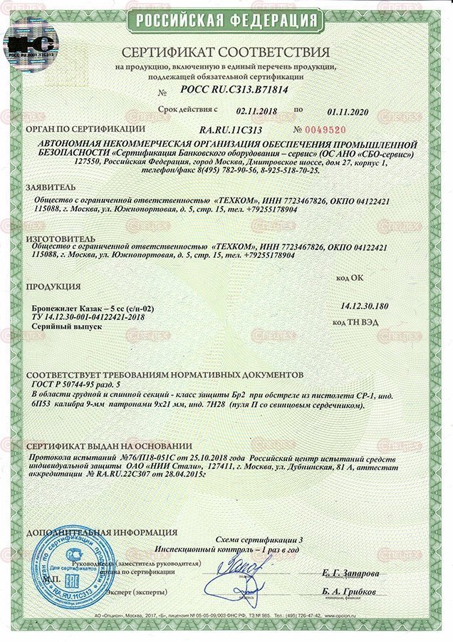 Купив Бронежилет Казак 5СС БР2 в нашем интернет-магазине, вы можете рассчитывать на бесплатную доставку по Москве. - Характеристики