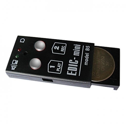- Для питания диктофона Edic-mini В5 используется недорогая и распространенная батарейка типа CR 2032, которую без труда можно приобрести в любом магазине.