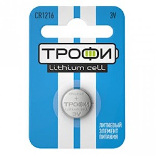 Трофи CR1216-1BL (10/240/43200) - плоская литиевая батарейка