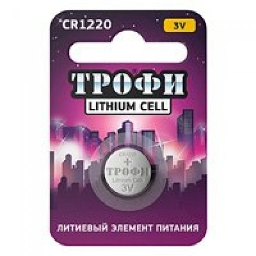 Трофи CR1220-1BL (10/240/38400) - плоская литиевая батарейка