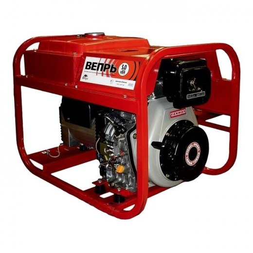 Дизельный генератор Вепрь АДП 5,0-230 ВЯ-Б – это синхронный альтернатор, максимально вырабатывающий 4 кВт переменного тока, напряжением 230 В и двигатель Yanmar L100AE.