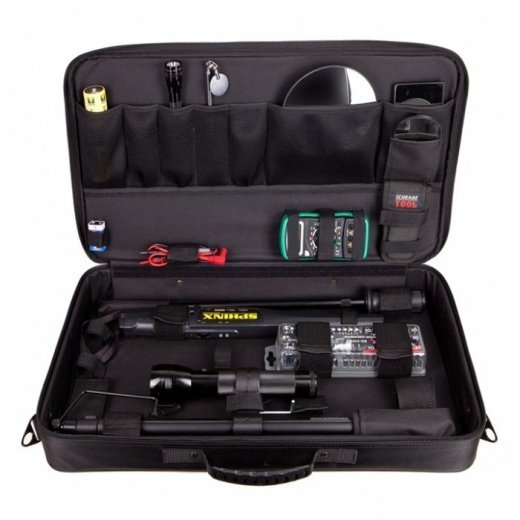 Взгляд-КБ - комплект досмотровых средств (комплект большой), предназначен для выполнения задач по визуальному досмотру труднодоступных, слабоосвещенных мест в помещениях, транспортных средствах и грузах, а так же для досмотра людей на наличии холодного и огнестрельно оружия. Досмотр транспорта осуществляется с помощью комплекта сменных зеркал с подсветкой фонарем, комплекта щупов.Досмотр людей осуществляется с помощью ручного металлодетектора. Комплект уложен в удобный жесткий кофр с элементами фиксации предметов, выполненный из водоотталкивающего материала