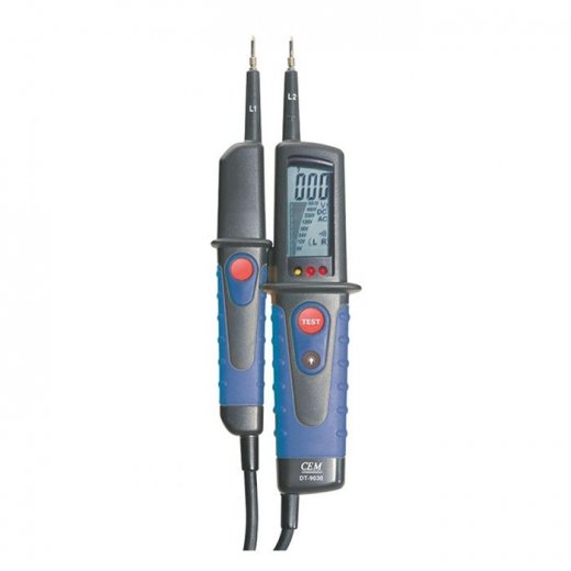Тестер CEM DT-9030 — портативный двухполюсный пробник, предназначенный для использования в ходе оперативного обслуживания и первичной диагностики электрических сетей инженерно-техническим персоналом. С помощью CEM DT-9030 вы можете определять величину напряжения переменного и постоянного тока, контролировать целостность электрических цепей, фиксировать фазный проводник в однофазных системах и порядок смены фаз при обслуживании трехфазных сетей.