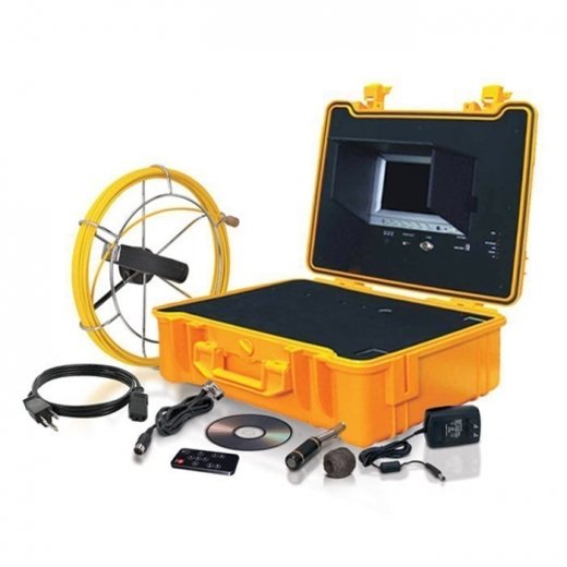 Компактная переносная телеинспекционная система с кабелем 20 метров, цветной камерой с встроенным зондом 512 Гц, встроенным аккумулятором, встроенным микрофоном и функцией записи на USB-flash накопитель или Micro SD (TF) карту памяти.
