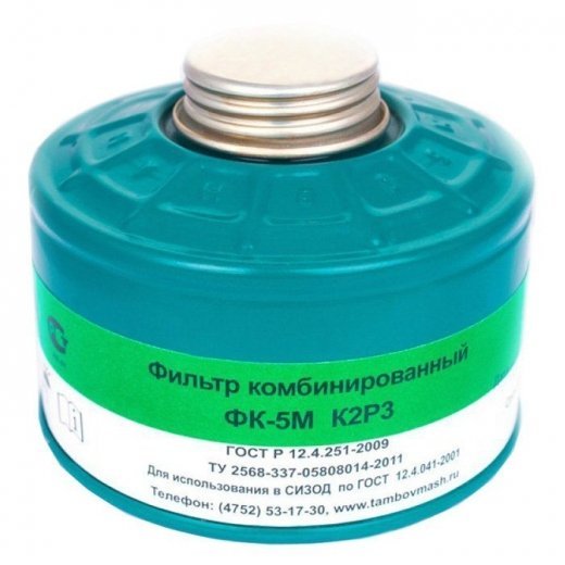 Фильтр ФК-5М марки К2Р3 используется в составе фильтрующего противогаза ППФ-5БМ, защищает от нескольких видов вредных веществ различных по концентрации и составам: