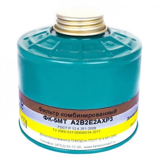 Фильтр к противогазу ФК-5МТ (м.A2B2E2AХP3) используется в составе фильтрующего противогаза ППФ-5М, защищает от нескольких видов вредных веществ различных по концентрации и составам: