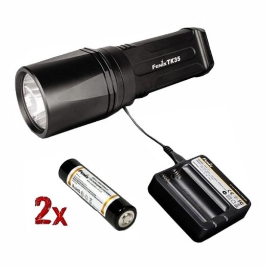 Поисковый набор Fenix TK35 + 2 Аккум Fenix + зарядка TR001 в подарок - состоит из фонаря, двух аккумуляторов и зарядгоно устройства