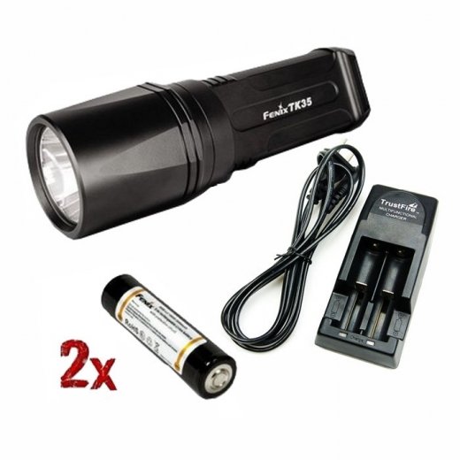 Поисковый набор Fenix TK35L2 + 2 Аккум Fenix 2600 + зарядка TR001 в подарок - состоит из фонаря, двух аккумуляторов и зарядгоно устройства