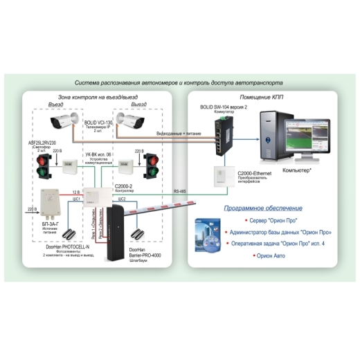 Решение дает возможность устанавливать систему на объектах различного масштаба, назначения и конфигурации.ДостоинстваПокупая Система распознавания автономеров и контроль доступа автотранспорта на базе оборудования Болид в нашем интернет-магазине, вы можете рассчитывать на бесплатную доставку по Москве.Особенности- организация дополнительного идентификационного признака в системе контроля доступа АРМ «Орион Про»