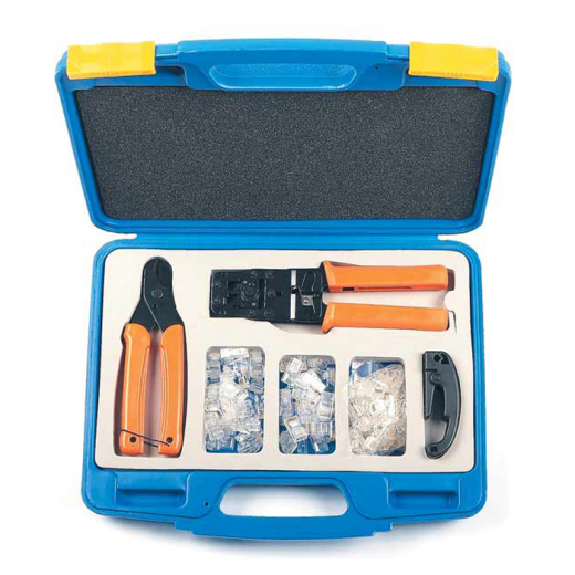 - пять пар разных сменных матриц, чтобы обжимать телевизионные и оптоволоконные разъемы;